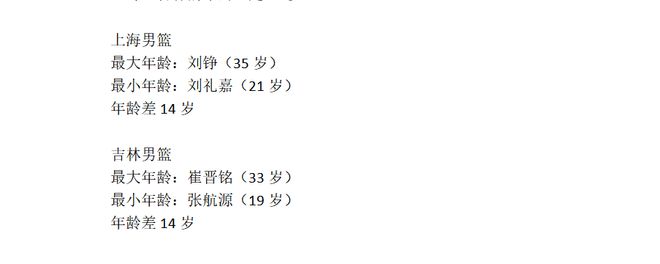 CBA新赛季,各队年龄最大和最小球员