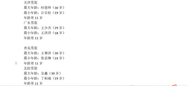 最小年龄:段睿骐(19岁)