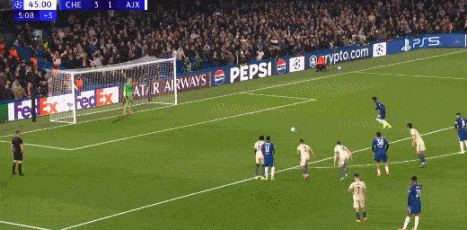 第45分钟,刚刚进球的韦格霍斯特又在防守中犯规送点,恩佐操刀命中,切尔西将比分扩大到了3-1。