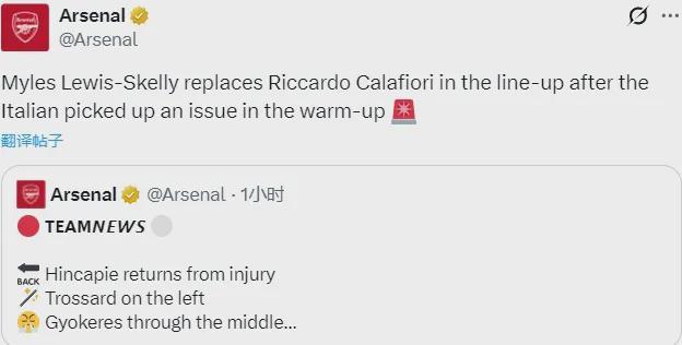 这个赛后阿尔特塔也有提及,用塔子的话,问题不是热身时产生的,是比赛前一天就有……但究竟是什么问题,阿尔特塔没说。